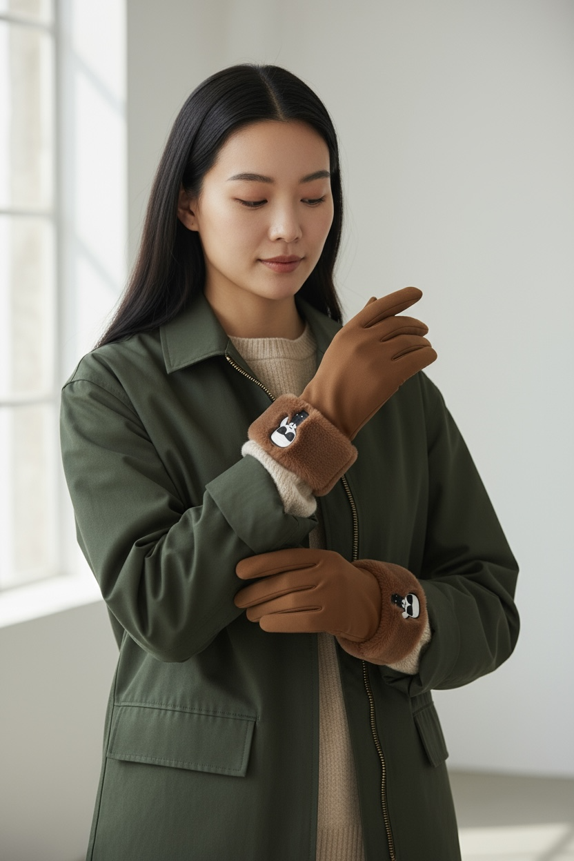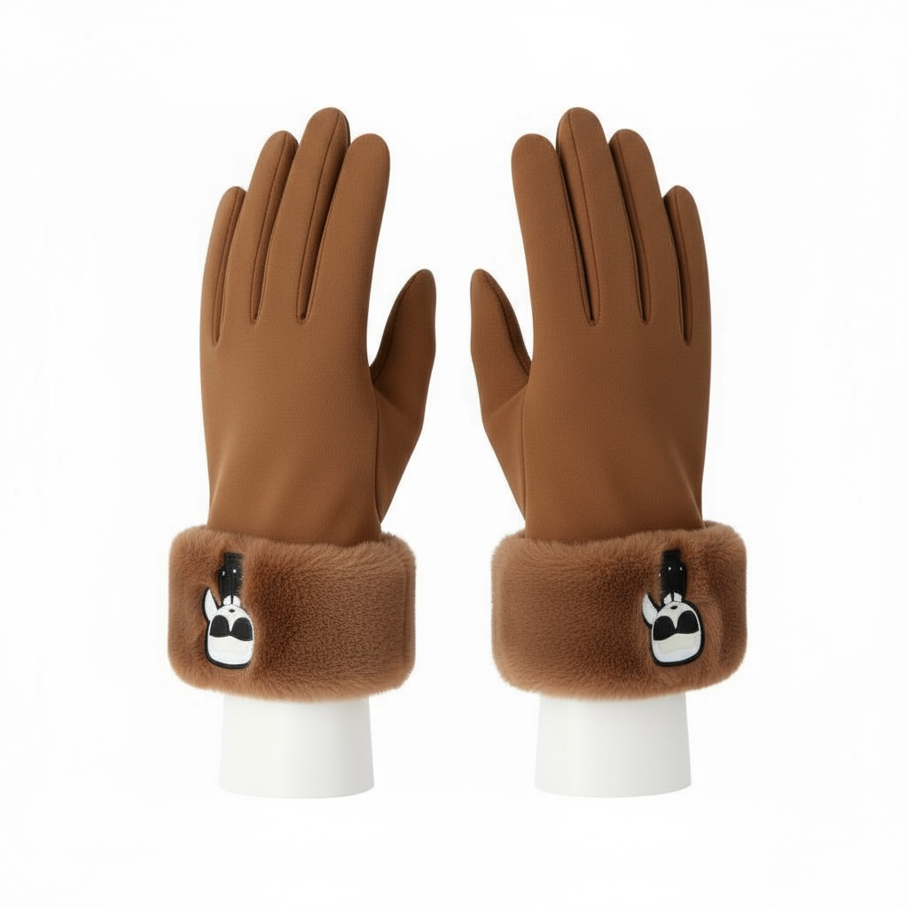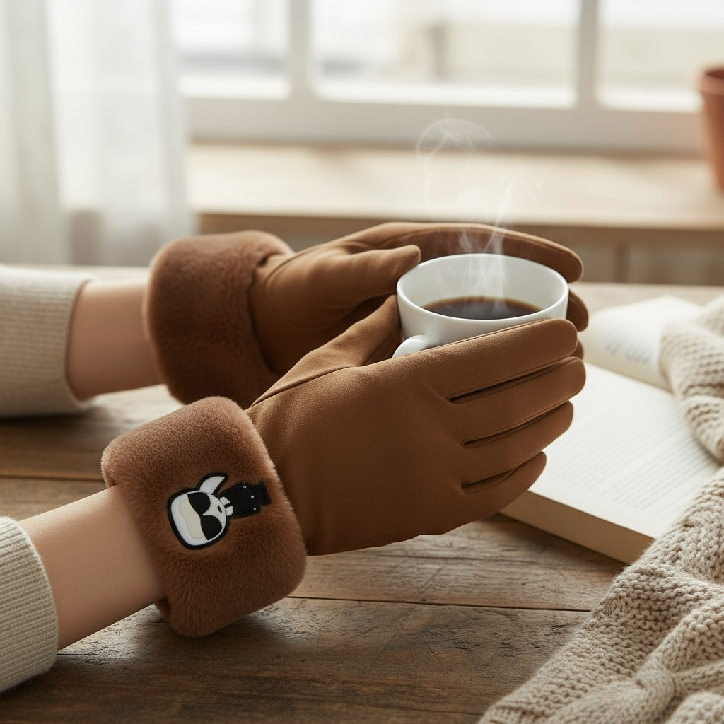 Αναβαθμίστε το χειμερινό σας στυλ με αυτά τα κομψά γυναικεία γάντια Karl Lagerfeld σε ζεστή καφέ απόχρωση. Κατασκευασμένα από μαλακό, ποιοτικό ύφασμα με εσωτερική επένδυση, προσφέρουν άνεση και προστασία από το κρύο. Διαθέτουν πολυτελές fur τελείωμα και το χαρακτηριστικό logo Karl στη μανσέτα.