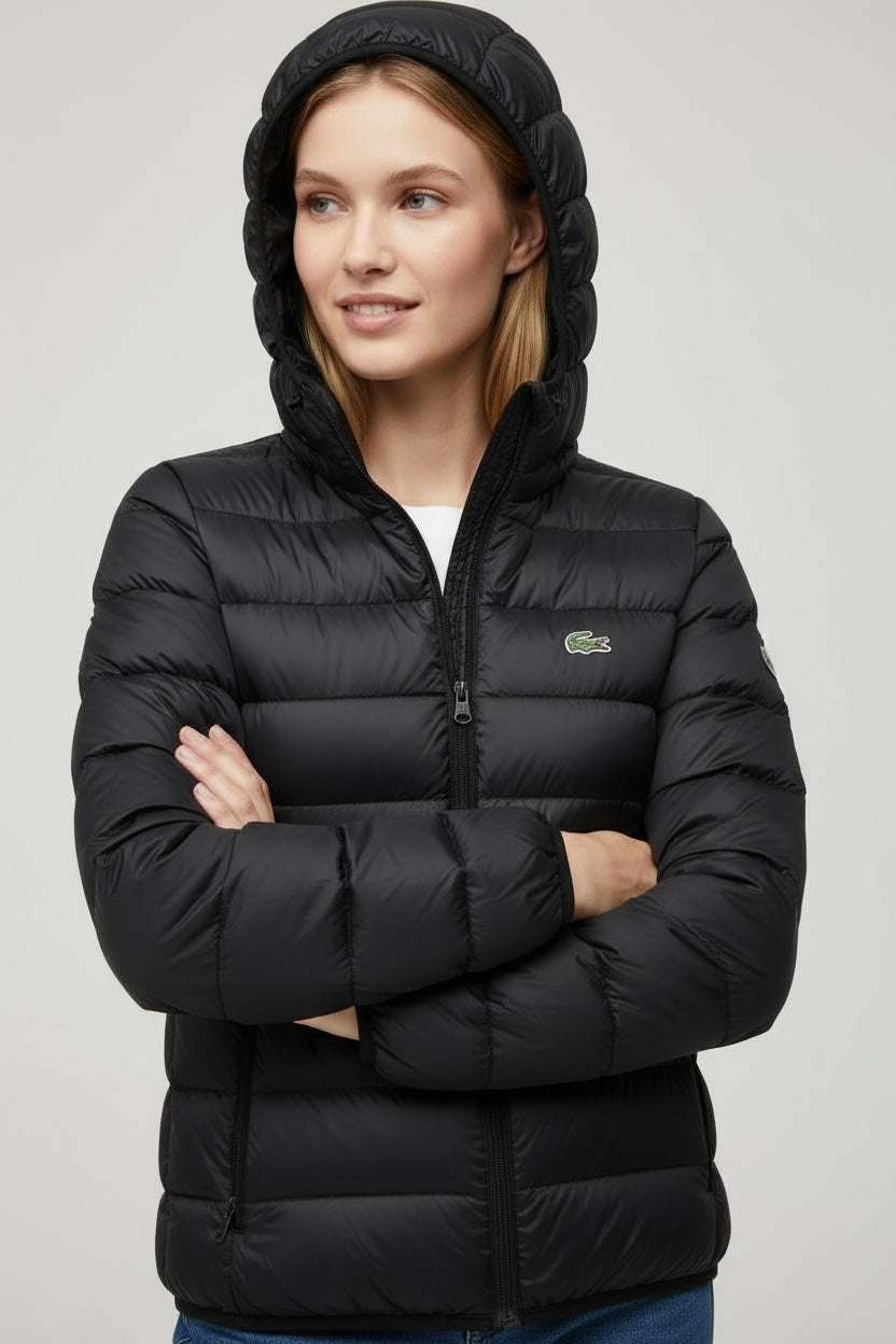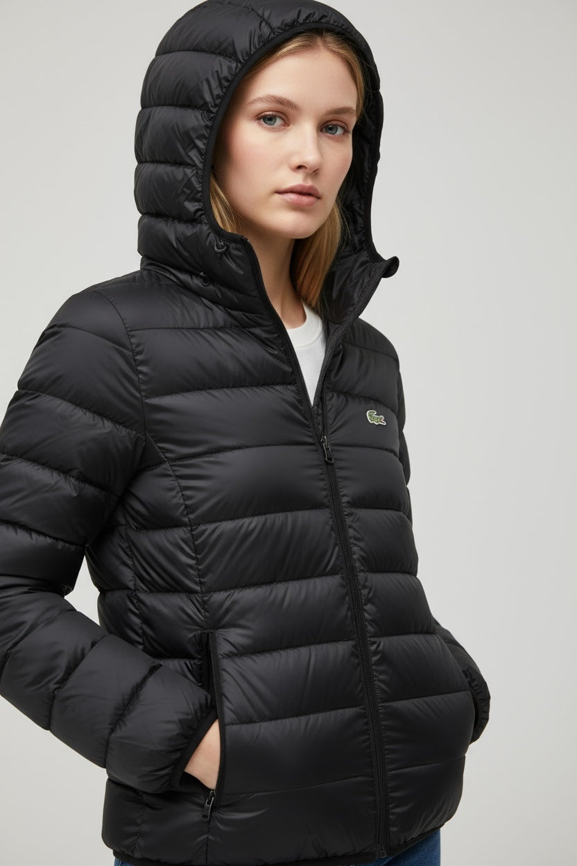 Γυναικείο Φουσκωτό Μπουφάν με Κουκούλα Lacoste – Μαύρο