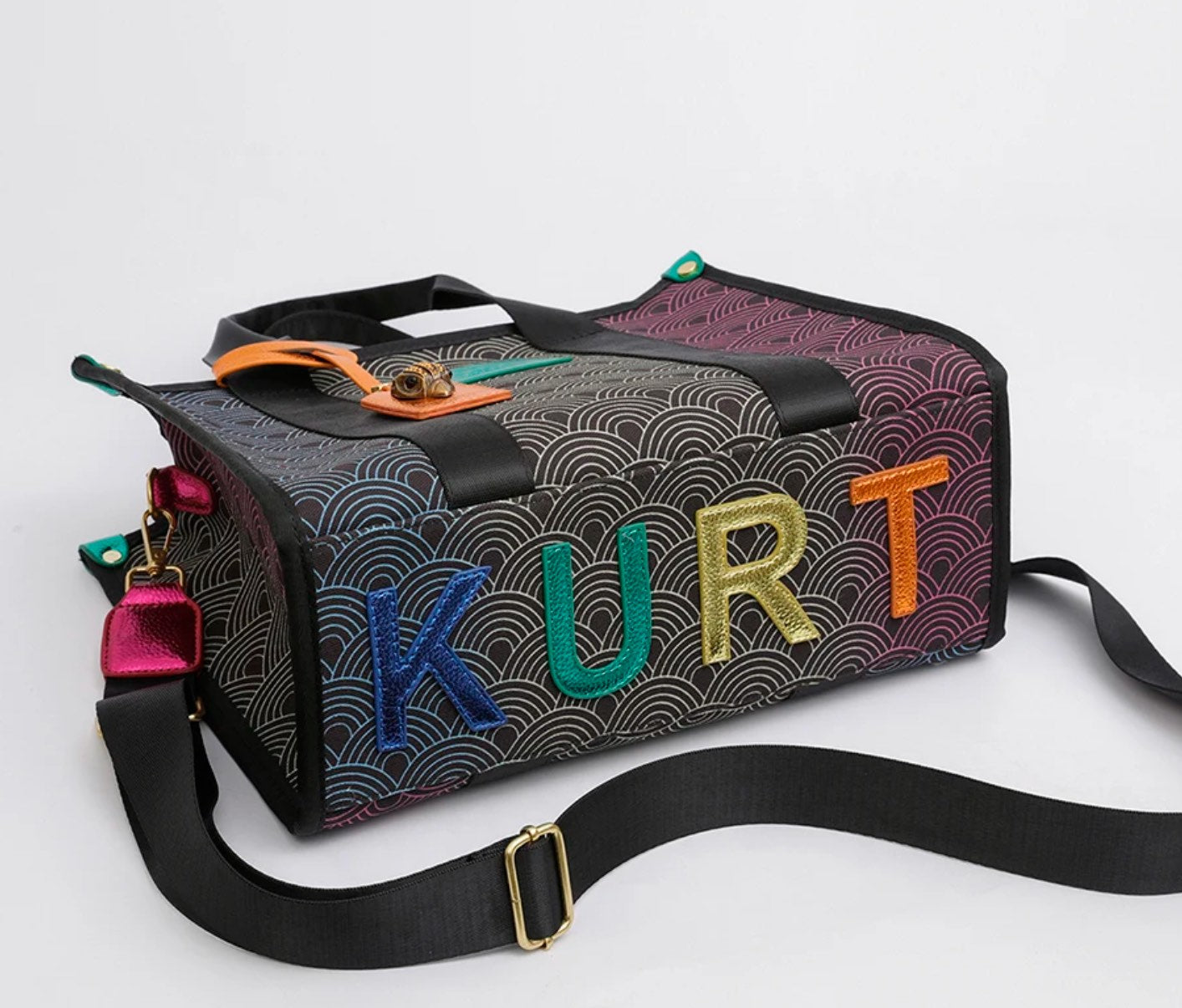 Τα μεγάλα πολύχρωμα γράμματα KURT στο κάτω μέρος δίνουν έναν παιχνιδιάρικο, premium χαρακτήρα, ενώ οι λεπτομέρειες σε μεταλλικούς τόνους (όπως το πορτοκαλί μπρελόκ και τα ροζ μεταλλικά φινιρίσματα) ολοκληρώνουν το look με λάμψη και στυλ.