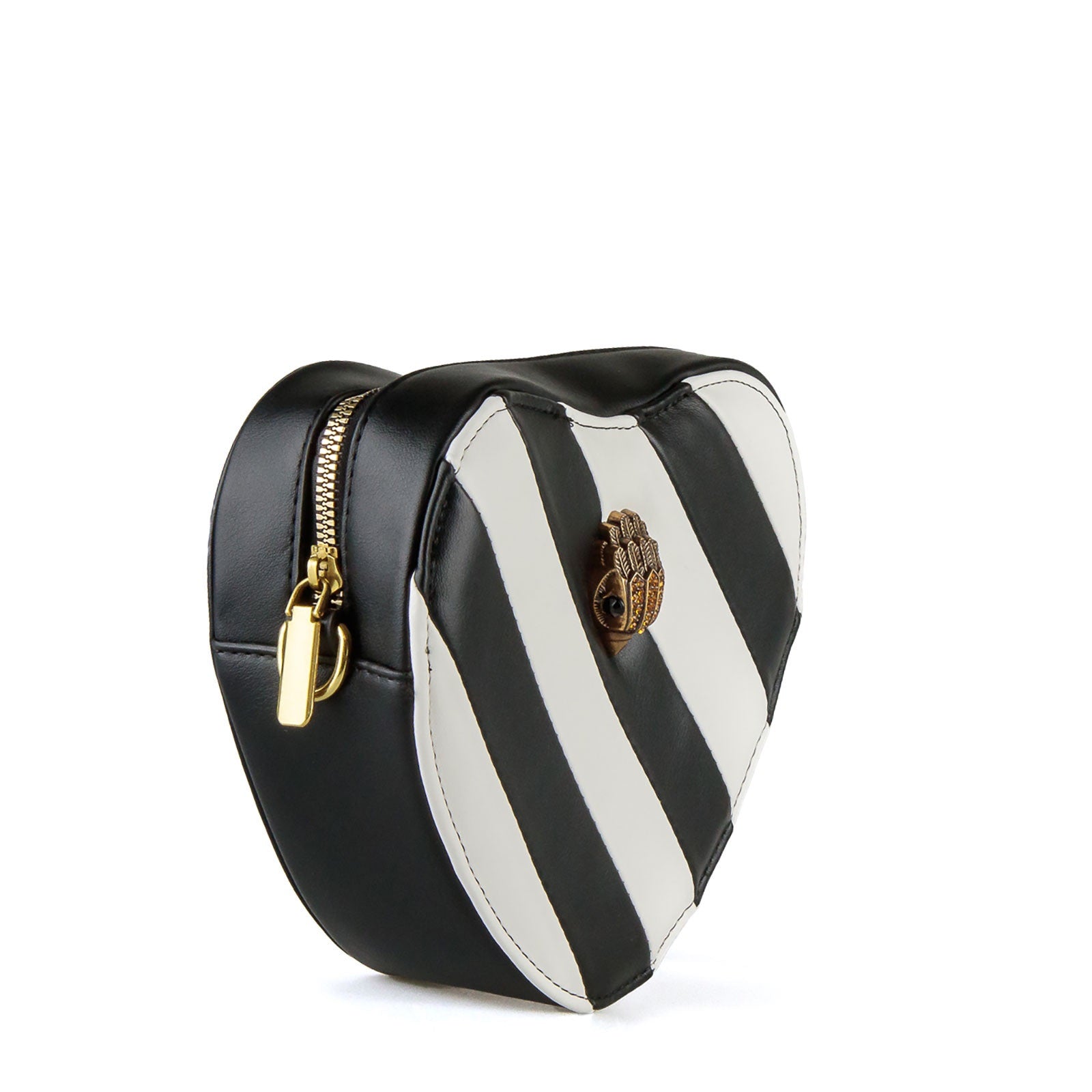 Η Heart Stripe Clutch της Kurt Geiger London είναι μία εντυπωσιακή τσάντα σε σχήμα καρδιάς που ξεχωρίζει για τον κομψό και παιχνιδιάρικο χαρακτήρα της. Με ασπρόμαυρες ρίγες και το χαρακτηριστικό Eagle emblem στο κέντρο, προσφέρει μια μοντέρνα, statement αισθητική. Ιδανική για βραδινές εξόδους ή για να αναβαθμίσει κάθε casual look.